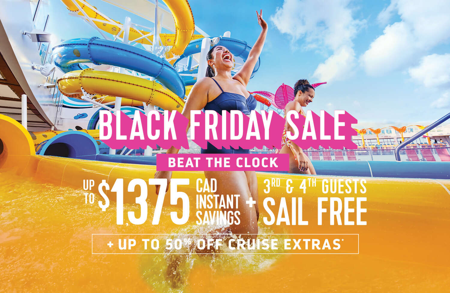 Right now, score incredible offers — like up to $1,375 CAD instant savings, 60% off your second guest, and your 3rd and 4th guests sail free*. Plus, get up to 50% off onboard extras and up to $353 CAD off air travel on select sailings.
